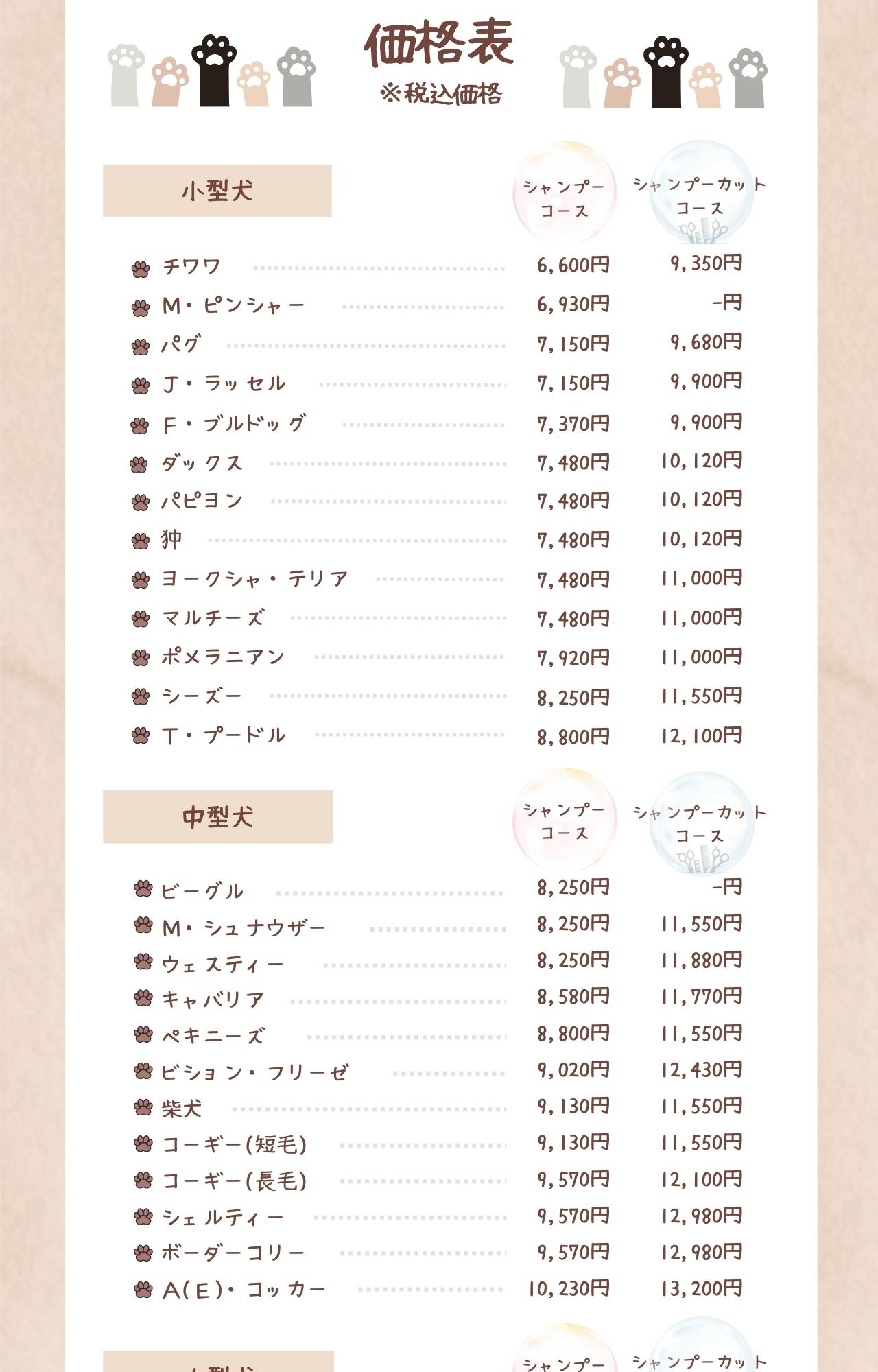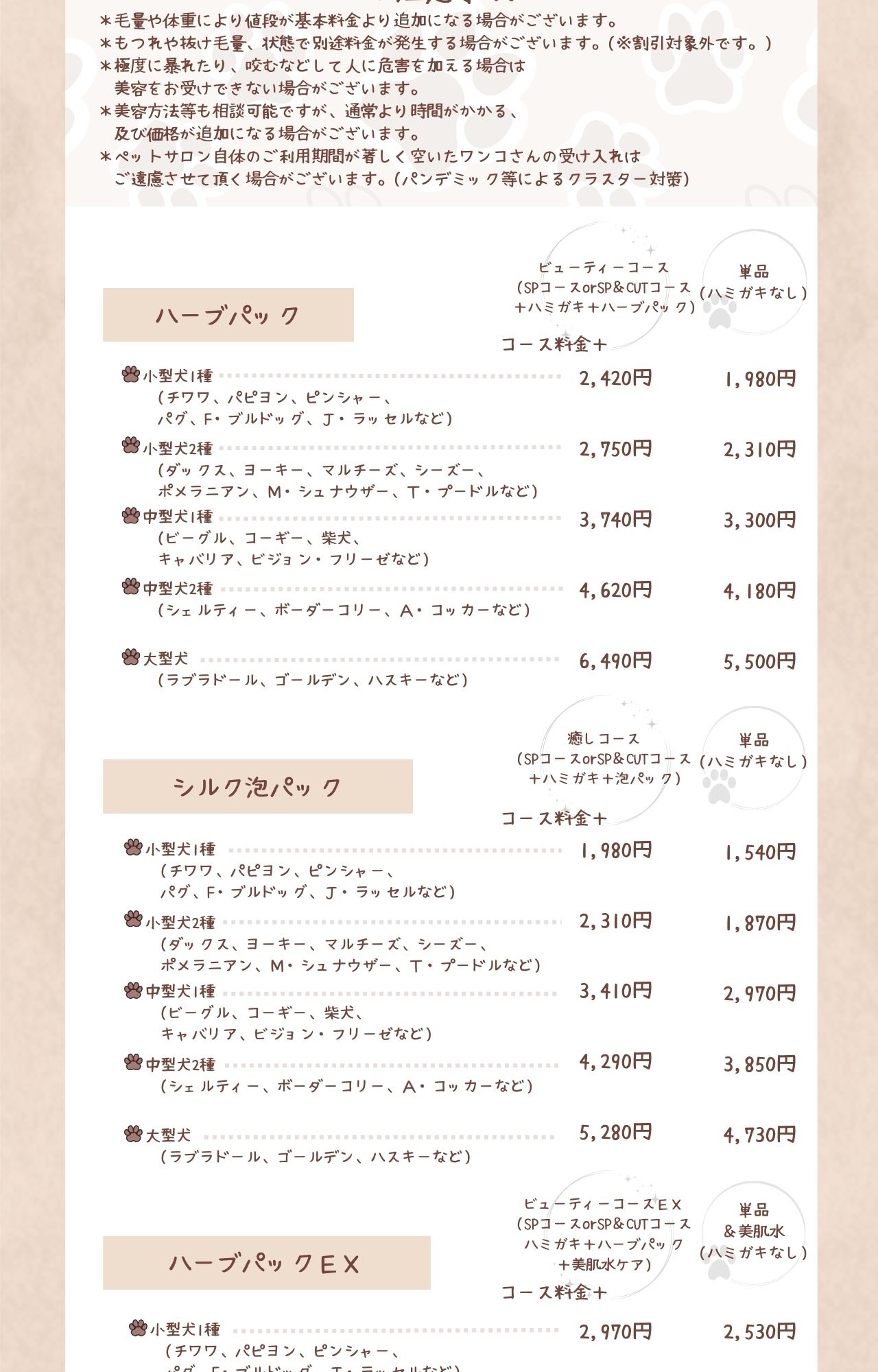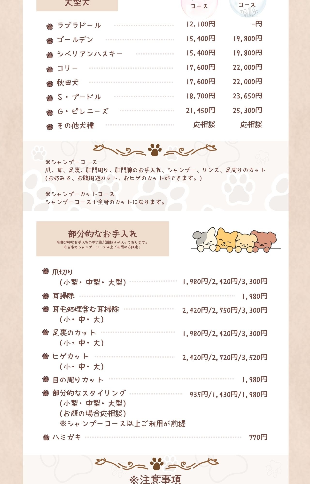 2020年7月より、部分的なお手入れご利用のワンコさんは、当店のシャンプーコース以上ご利用のご家族に限らせて頂きます。